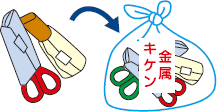小型金属を出す場合は、袋に「金属」と貼り紙等でわかるように表示します。