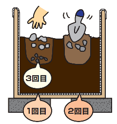 土の中からごみが表面に出てきたら、やさしく土をかぶせておく。