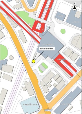 中百舌鳥駅前指定喫煙所について、令和5年1月25日に下図のとおり移設を完了し、新喫煙所の供用を開始しましたのでお知らせします。なお、旧喫煙所は新喫煙所の供用開始と同時に閉鎖しています。旧喫煙所(点字ブロック)前等で喫煙をしないようお願いします。