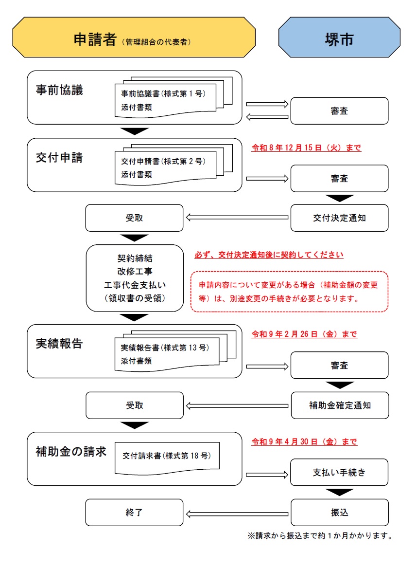 本補助金の利用にあたっては、工事の契約の前に、事前協議や補助申請等の手続きを行う必要があります。