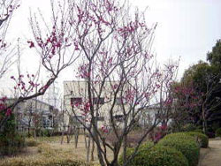大仙公園内の日本庭園には、トウバイなどの梅が植えられています。2月中旬から下旬が見ごろです。