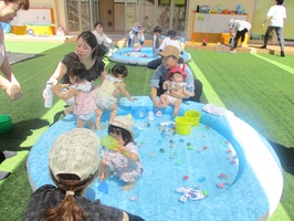 こども園や幼稚園では、地域の子育て支援として園庭開放をしています。