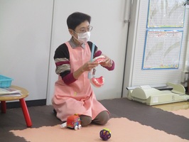 ・病児保育室ゆりかごの施設長小西先生が「病児保育室」についてやこどもの病気時のかかわりなどをお話してくれます♪