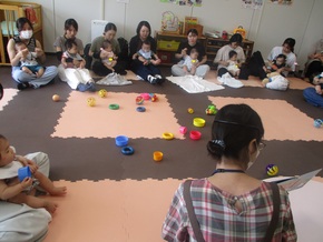 保健師による育児相談や身体計測や保育士によるふれあい遊び、保護者同士の交流の時間もありますので、気軽に遊びに来て下さいね!