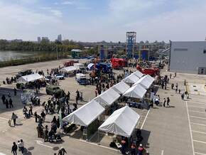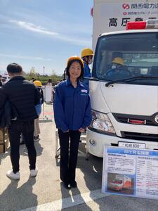 会場内を消防車や救急車が走り、乗車体験やレスキュー、放水体験コーナーには長い行列ができ、賑わっていました。その他にも、郵便局の配達車両や関西電力送配電の高圧電力車、自衛隊車両など、はたらく車両がずらりと並んだ光景にこども達は笑顔いっぱい。どのコーナーでも、保護者の方々は写真撮影に大忙しでした。