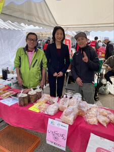 美原区役所ブースでは、美原朝市の古代米をはじめ、野菜や果物を販売、協力事業者のマルミベーカリーさんからはパンや豚まん、焼き芋、焼き栗等を販売され、大好評でした。