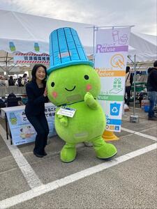 堺市環境局のブースには、人気のマスコットキャラクター「ムーやん」が登場!来場者の皆様に囲まれながら、ごみの減量化や火災・事故の原因となるモバイルバッテリーなどの正しい処分方法について啓発活動を行っていました。