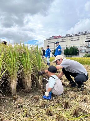 美原区古代米プロジェクト昔ながらの稲刈り体験イベント