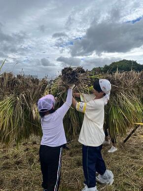 自分の背丈よりも大きい稲を運ぶのは大変そうでしたが、自分の力で頑張ろうとする光景がとても微笑ましく見えました。
