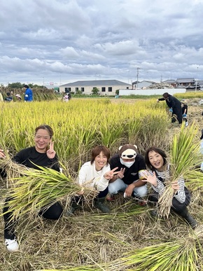 昔ながらの稲刈り体験イベントに、みはら農業塾の塾生と卒業生もスタッフとして参加しました。参加者の稲刈りのサポートを行い、イベントの運営を補助しました。