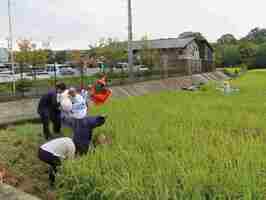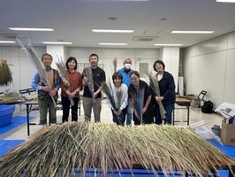 ドライフラワー用の稲穂の下処理をしました。また、稲穂を乾燥させるため、稲穂を竿にかけました。その後、田んぼで他品種の稲や雑草を抜き取り、畔の草刈をしました。