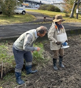 そのあと、田んぼの有機肥料となるレンゲを育てるために種まきをしました。