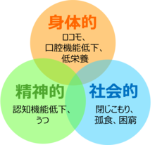 フレイルは、3つの要素があり、互いに大きく関係しています。