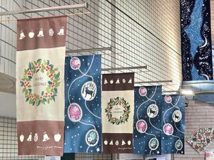 12月はクリスマスリースが描かれた注染とトナカイなどが描かれた注染を選びました。