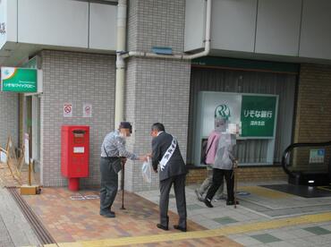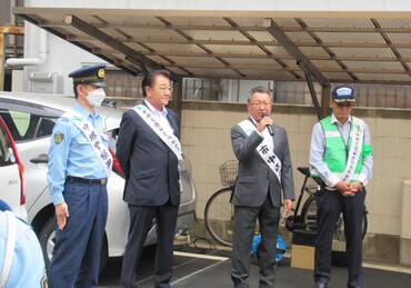 春の全国交通安全運動を実施しました。スローガンは「ヘルメット かぶるあなたは かっこいい」です。深井駅前での啓発活動に参加し、通勤、通学中の皆様に交通安全を呼びかけました。