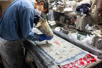 職人が糊置きした生地に、お好きな色を選んで染められる「注染体験」を開催します。