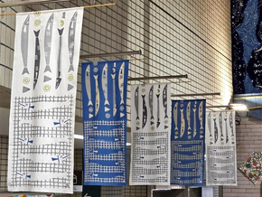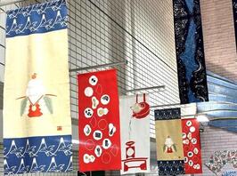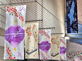 季節やイベントに合わせた柄の注染手ぬぐいを中区役所1階エントランスホールに展示しています。