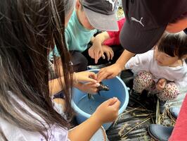大学内の池に設置した仕掛けを引き上げて、どんな生き物がいるか観察し、平井教授が分かりやすく解説します。自然とのふれあいを通して、生き物のくらしや環境の大切さを学べる貴重な体験イベントです。