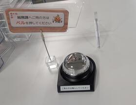 また、呼び鈴と「総務課に御用の方はベルを押してください」の札を設置しました。