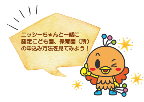 こちらのページでは、保育施設の種類や申込み方法などをわかりやすくご案内しています。認定こども園、保育園、幼稚園、小規模保育事業など、わが家にぴったりの園を見つけるヒントを、ニッシーちゃんと一緒に探してみましょう!