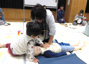 こどもへの心臓マッサージの方法を教えてもらったよ!