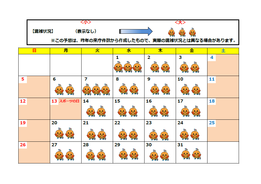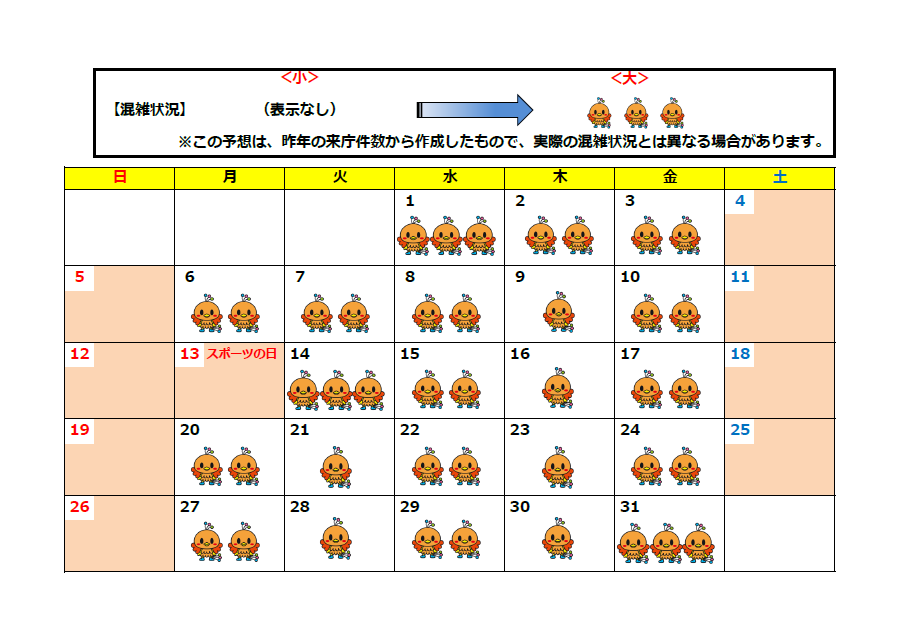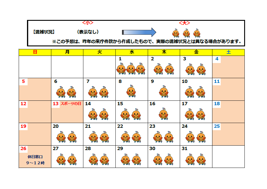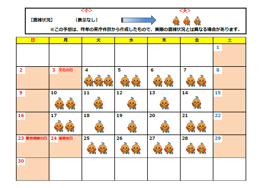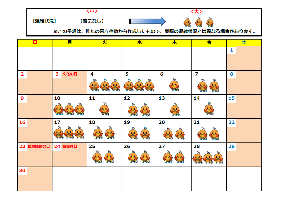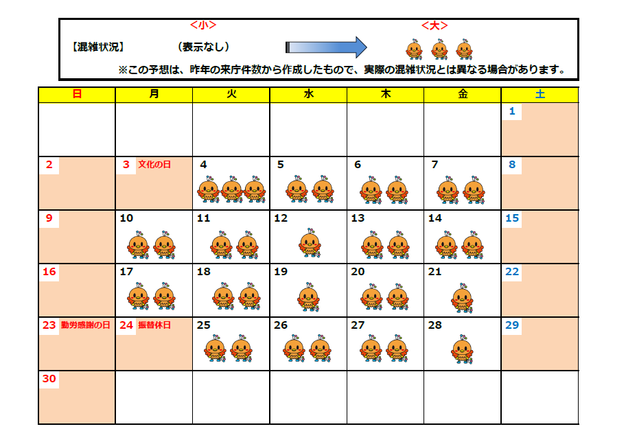 窓口混雑予想カレンダー(2025年10月~2025年11月)