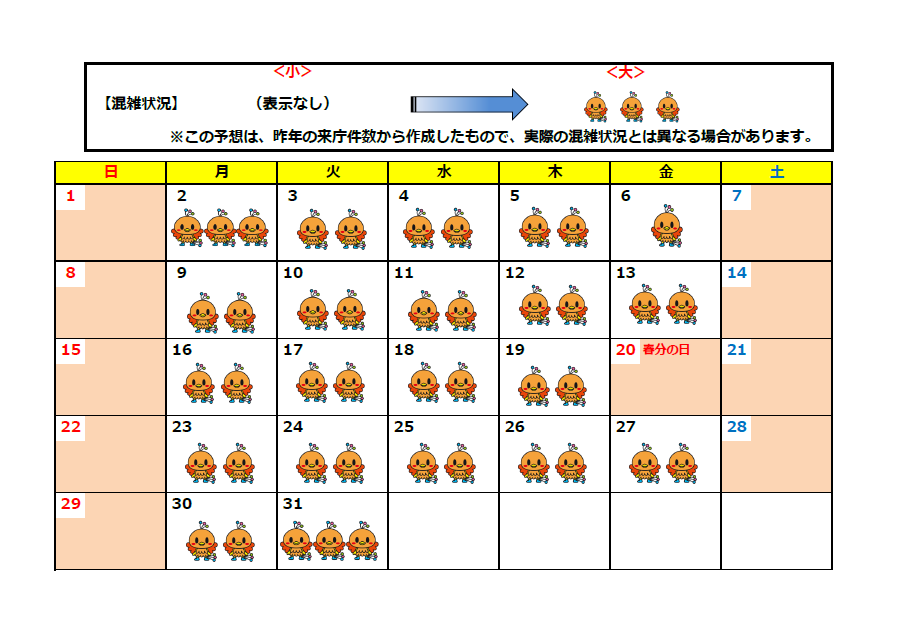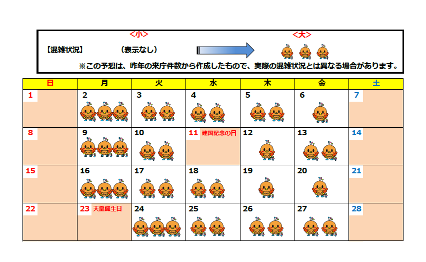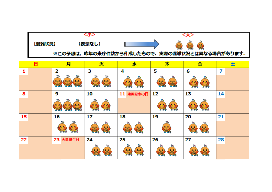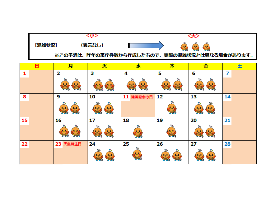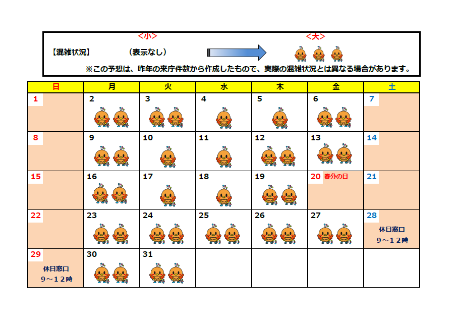 窓口混雑予想カレンダー(2026年2月~2026年3月)