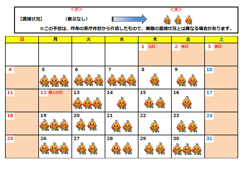 窓口混雑予想カレンダー(2025年12月~2026年1月)