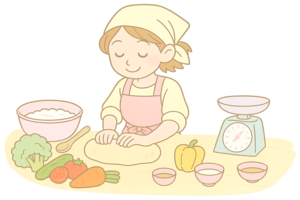 エプロン・三角巾・マスク(調理中は着用をお願いします)