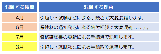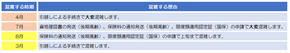 - 月曜日や連休明けの開庁日は、大変混雑します。(ゴールデンウィーク、年末年始など)