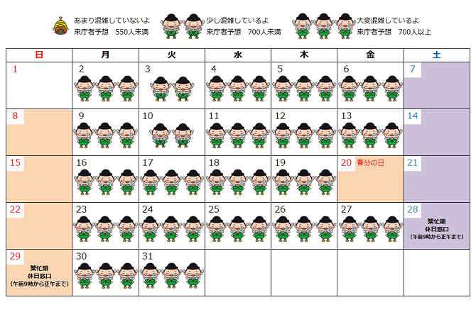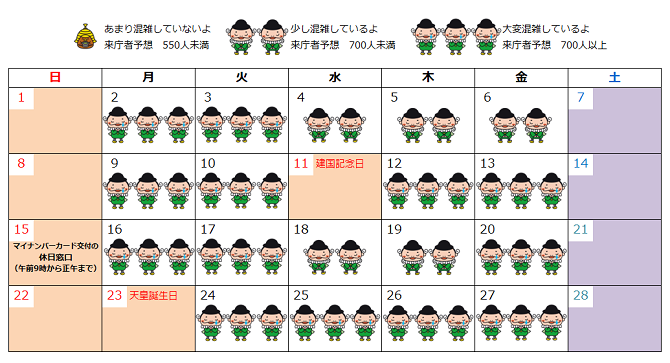 例年の状況を目安にした窓口の混雑予想です。