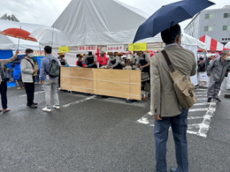 第18回東区民まつりに伺い、各校区の模擬店や堺市立野田中学校吹奏楽部の皆さまによるオープニング演奏を拝見しました。雨天にもかかわらず多くの方が来場し、数年ぶりの区民まつりを楽しまれているようで、賑わいのある一日となりました。
