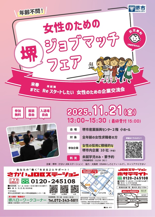 11月21日(金曜日)【女性のための企業交流会】堺ジョブマッチフェア