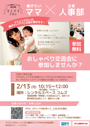 「マミクリさかい」事業者によるアドバイスや子育て世代の女性の意見を得て、女性雇用のための取組を行った企業の情報を発信します。