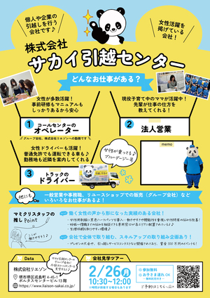 成果 | 参加者には子育て女性に優しい企業(休暇制度やシフト等について大変興味を持っていただけた)であることが周知できた。コールセンターのみならず、強みである、営業所の多さを活かした様々な勤務地での採用について、求職者とのマッチングに今後期待したい。 |
