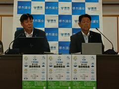 正副議長の記者会見の様子
