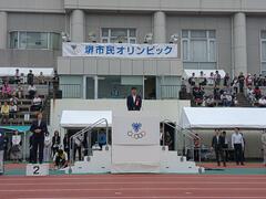 西田議長は「選手の皆様におかれましては、日頃の練習の成果を存分に発揮し、応援に来られた皆様におかれましても、今日一日を楽しんでいただければと思います。また、堺市民オリンピックを通じて、地域間の交流を深められ、更なる地域の活性化につながることを期待しています」と挨拶しました。