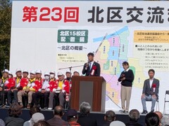 西田議長は「本日の交流まつりでは、北区の魅力を広く知っていただき、住民同士の絆を深め、北区の未来を担う子どもたちをはじめ多くの方に地域のつながりの大切さを感じていただくきっかけとなれば幸いです」と挨拶しました。