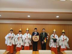 西田議長と西川副議長は福娘から招福の縁起物である福箕・福笹を受け取り、鈴祓いを受けました。