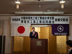 大阪府電気工事工業組合堺支部・堺電気工事工業協同組合新春交歓会が開催され、堺市議会を代表して西田議長が出席しました。