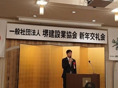 一般社団法人堺建設業協会新年交礼会が開催され、堺市議会を代表して西田議長と西川副議長が出席しました。