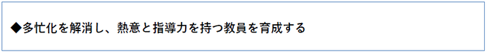 こどもたちにより良い教育を提供するため、厳しい目で現状を見つめ直し組織全体で危機感を共有した上で、教育に関わるすべての職員が強い意志と責任感を持って様々な課題に対し前向きに挑戦します。