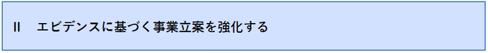 事業をより効果的・効率的に進めるため、データ等のエビデンスに基づく事業立案を強化します。また事業実施後は速やかに効果を検証し、適宜見直しを行うことで更なる充実を図ります。