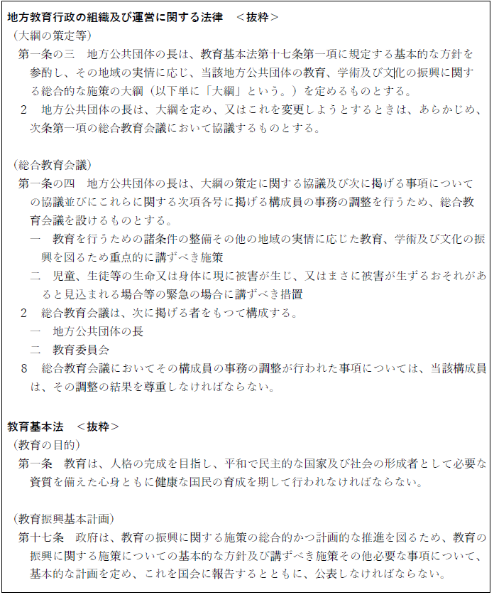 総合教育会議で調整された大綱は地方公共団体の長と教育委員会の双方に尊重義務があります。