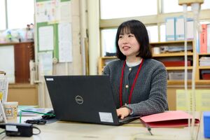 働き始めた頃は、こんなに多岐にわたる業務を行っていることに驚き、聞きなれない専門用語も多く、戸惑ったこともありました。しかし、そのような不安はすぐになくなりました。職員室はとても和気あいあいとした雰囲気で、多くの教職員がみんなで支え合って仕事を進めています。