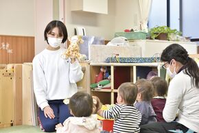 0歳児クラスの担任をしています。0歳児は個々の生活リズムや発達の個人差が大きいため、少人数ごとのグループで担当制をとり、教育・保育を行っています。こどもたちが私を信頼してくれる様子や成長する様子を近くで見守ることができ、日々喜びを感じています。また、その成長を保護者の方とも共有し、一緒に喜び合えることはやりがいにつながっています。