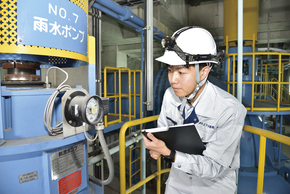 主に水再生センターや下水ポンプ場等の下水道施設の設備工事にかかる設計や監督業務を行っています。現在は浜寺下水ポンプ場の雨水ポンプ設備を更新する工事監督を担当しています。工事業者と綿密に計画を練り、何度も現場へ赴いて施工状況の確認や耐震検査、性能試験等を行います。