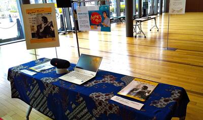 受付前では、2025年12月にASEANセンターがYouTuber虹色侍ずまさんとコラボしたPRソング「ASEANってなに?」を紹介しました
