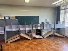 生徒会役員選挙の投票所については、堺市選挙管理委員会からお貸しした投票箱と記載台を使用し、実際の投票所に近いレイアウトで設営していただきました。