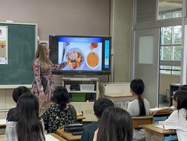 授業ではチェコの文化や地理などの紹介のほか、チェコ語を話してみたり、こどもたちが普段の授業で受けている食育にちなんで、チェコの普段の食事や主食、学校での昼食など、食文化についてお話いただいたりしました。
